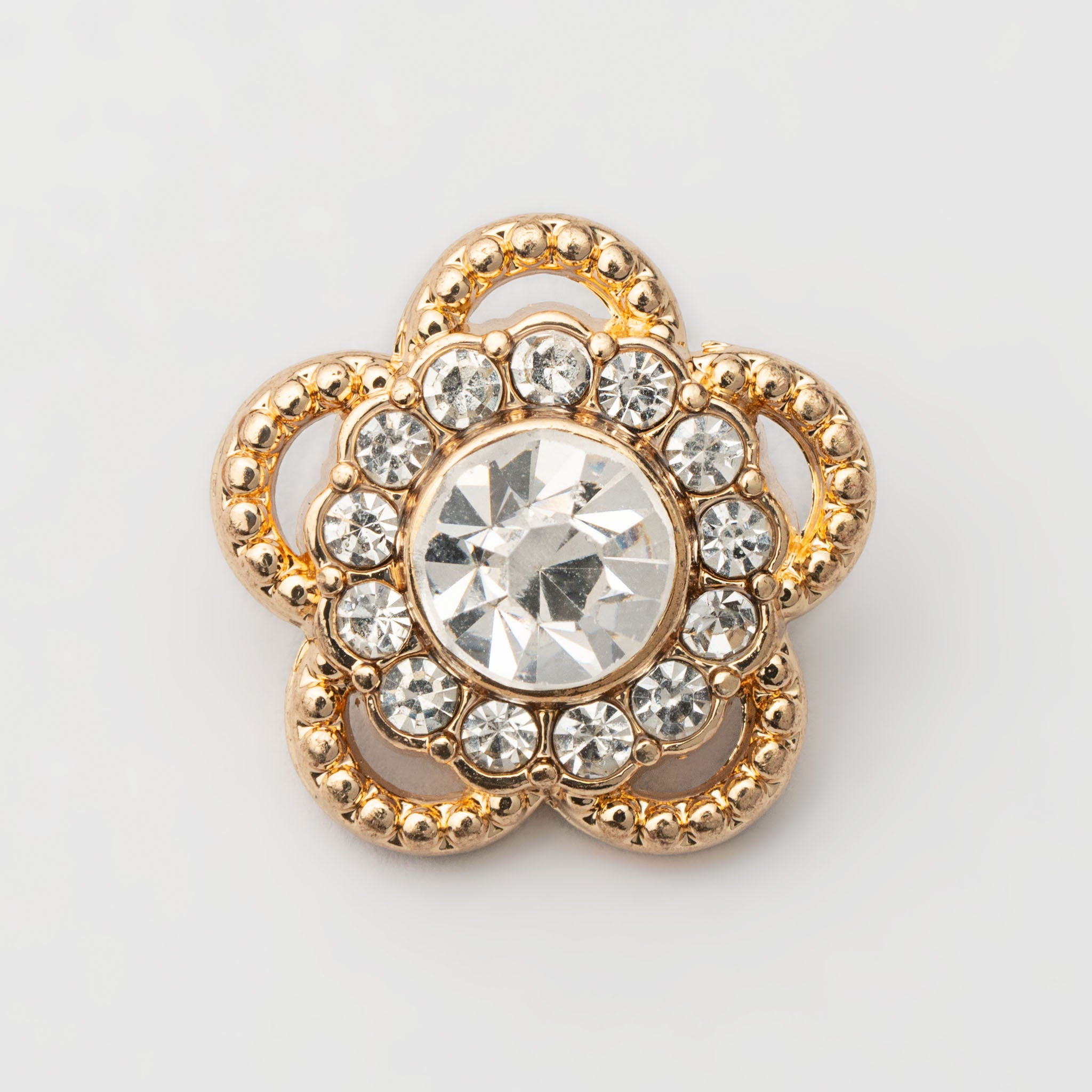 Näillä timantinhohtoisilla koristenapeilla viimeistelet neuletakkisi ja teet siitä katseenvangitsijan. Napit muistuttavat pieniä kullan sävyisiä kukkia. Napit ovat halkaisiljaltaan 18 mm kokoiset ja metalliosat kullansävyiset.