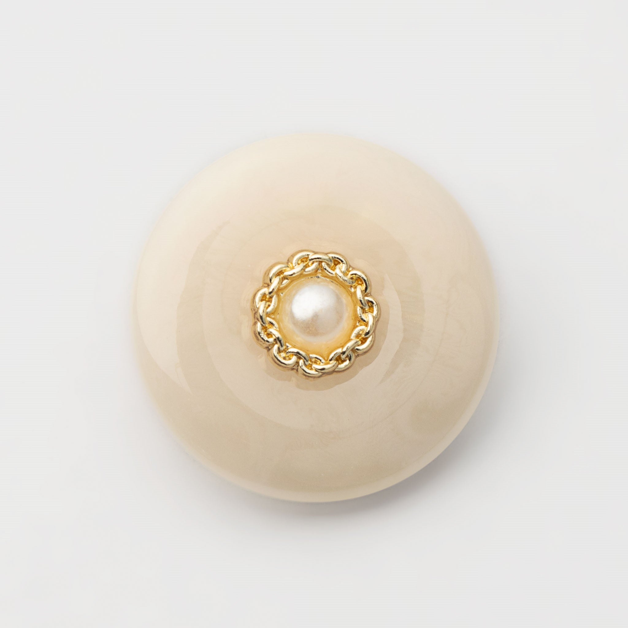 Näillä hienostuneen sävyisillä koristenapeilla viimeistelet neuletakkisi ja teet siitä katseenvangitsijan. Napit ovat halkaisiljaltaan 20 mm kokoiset. Metalliosat ovat kullansävyiset ja keskellä nappia on pieni kirkkaanvärinen koristehelmi.