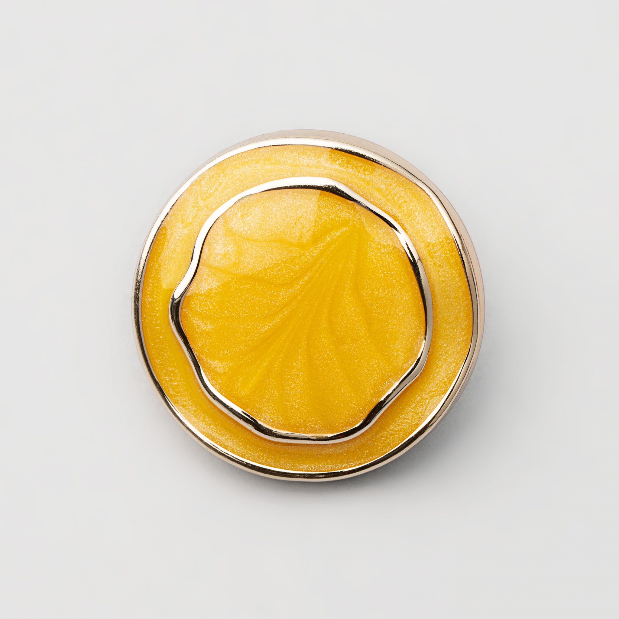 Näillä koristenapeilla viimeistelet neuletakkisi ja teet siitä katseenvangitsijan. Nämä tyylikkäät  napit ovat kellertävän sävyiset ja halkaisiljaltaan 21 mm kokoiset. Metalliosat ovat kullansävyiset.