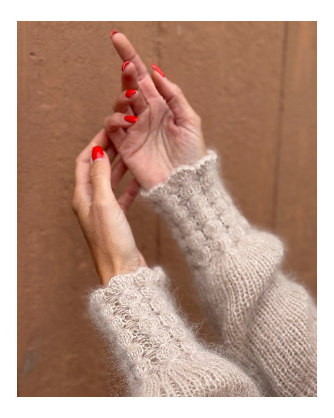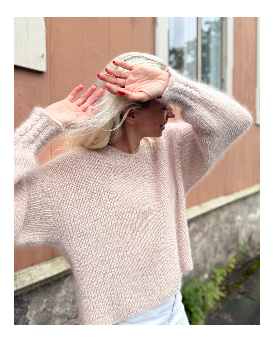 Sunday Knitting Clubin perustaja Lindan suunnittelema Almaz-neule on kaunis ja naisellinen neule, jonka hihansuissa on katseenkiinnittävä joustin. Paita on saumaton ja se neulotaan ylhäältä alas.