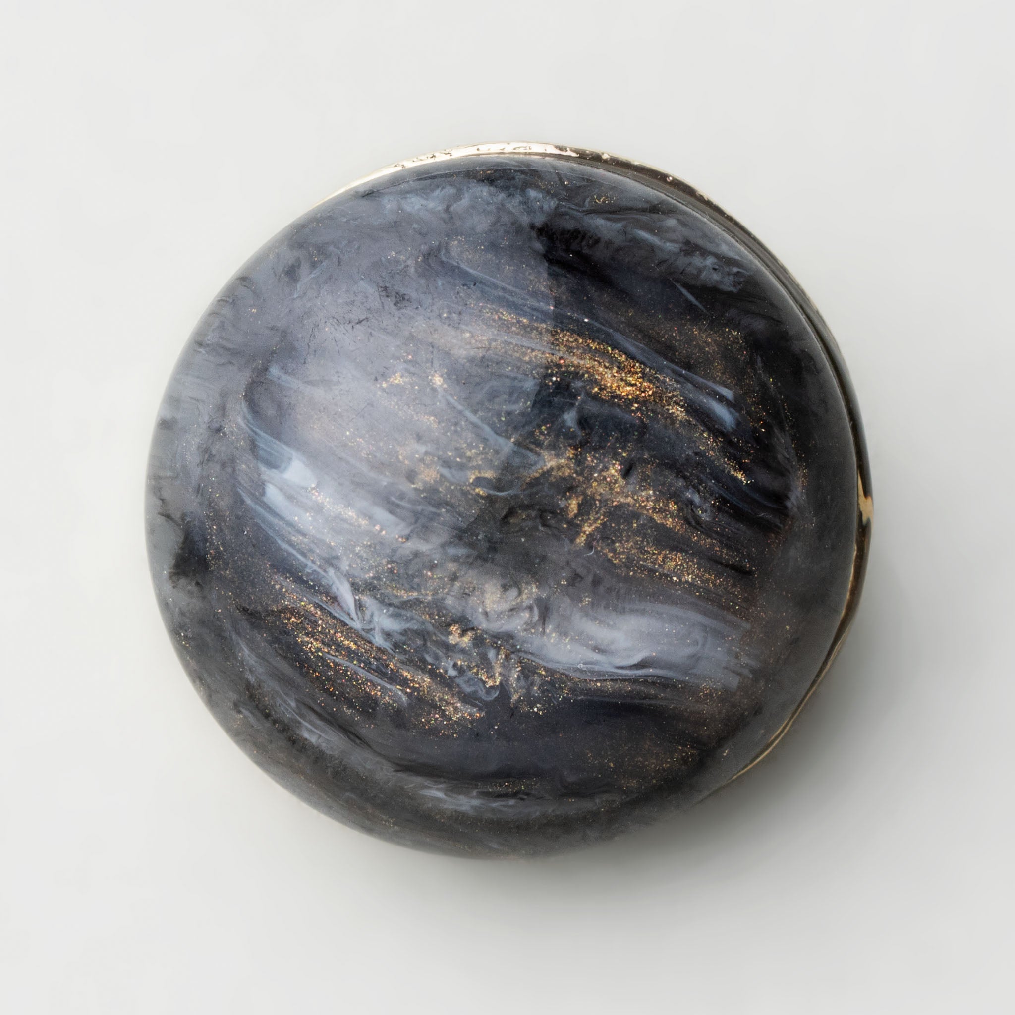 Näillä korukiviä muistuttavilla napeilla viimeistelet neuletakkisi ja annat sille arvokkaan ilmeen. Napit ovat halkaisiljaltaan 20 mm kokoiset ja taustalevy, josta nappi ommellaan kiinni on kullansävyinen. Väri: helmeilevä grafiitin harmaa, jossa hieman ruskeaa mukana.