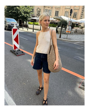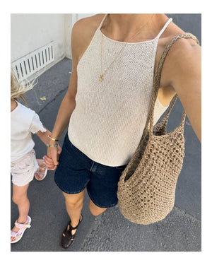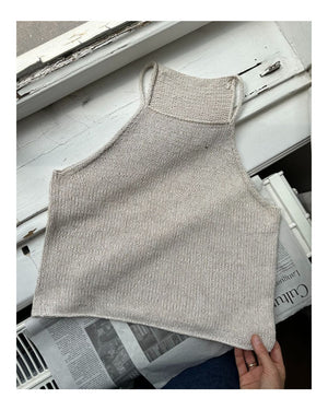 PetiteKnit Audrey-toppi neulotaan alhaalta ylöspäin. Vartalo neulotaan suljettuna neuleena sileällä neuleella, jonka jälkeen työ jaetaan etu- ja takakappaleeseen. Molempia kappaleita neulotaan edestakaisin sileällä neuleella, ja sivuissa tehdään kavennuksia. Olkaimet neulotaan i-cord-tekniikalla.