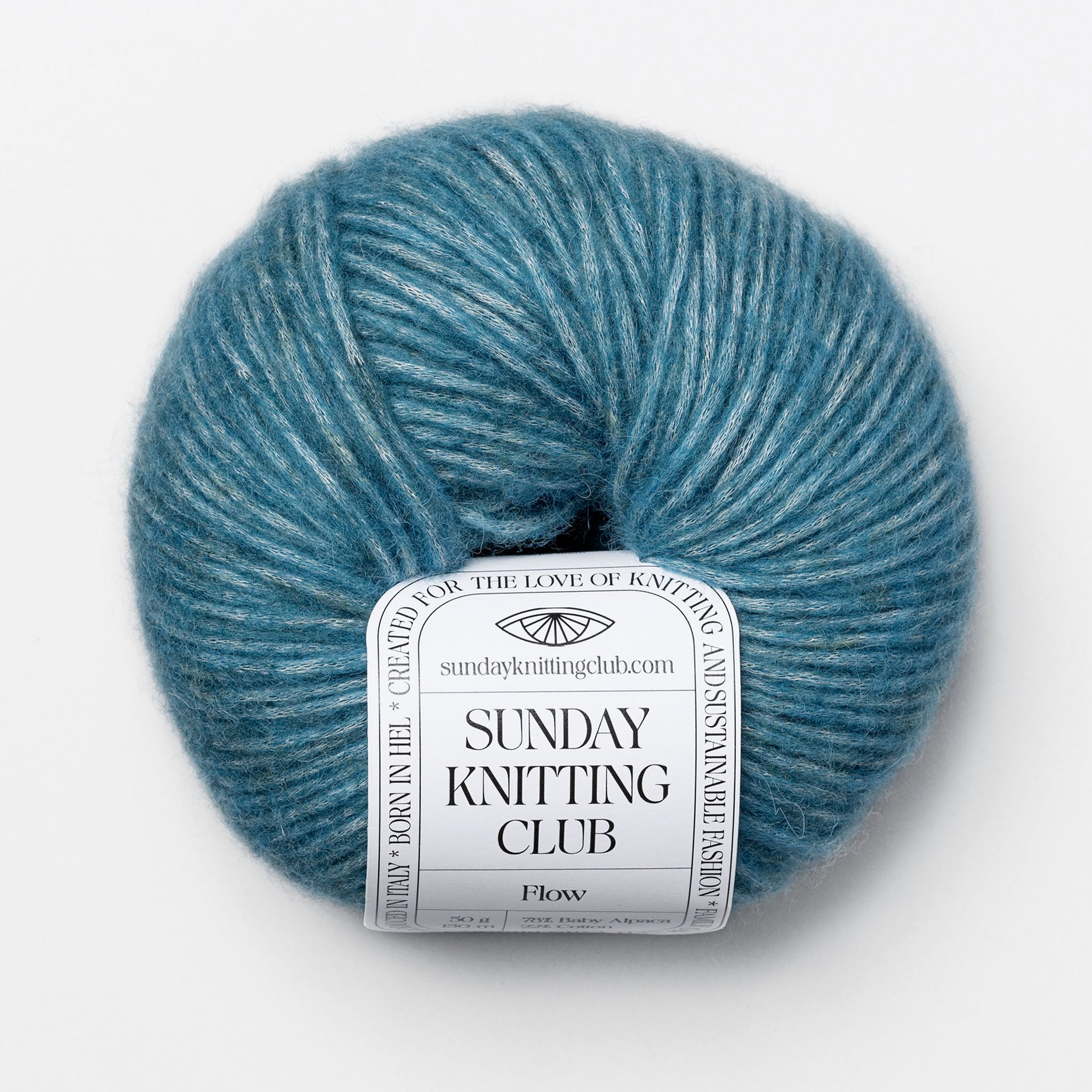 Sunday Knitting Club Flow on uusin Sunday Knitting Club -lanka ja sitä saa tällä hetkellä 14 eri värissä. Tämä superpehmeä, kevyt, ilmava ja täyteläinen lanka koostuu luonnollisista materiaaleista suhteessa 78 % babyalpakkaa, 22 % puuvillaa. SUNDAY KNITTING CLUB FLOW on valmistettu Italiassa huolella valituista materiaaleista.